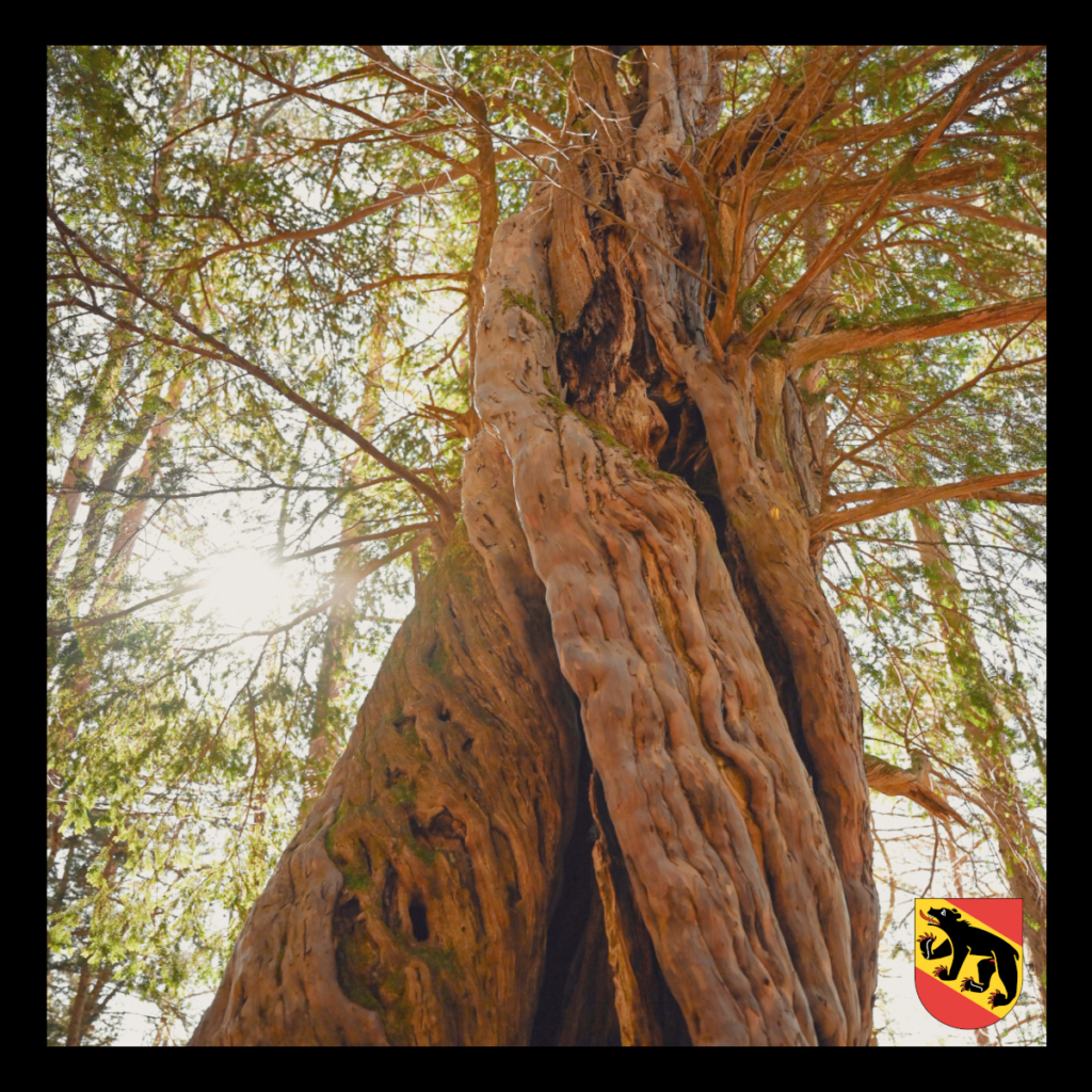 Die Eibe von Crèmines (BE) – ein Baum, der aussieht wie ein verdrehtes Gewinde – über 1500 Jahre alt.