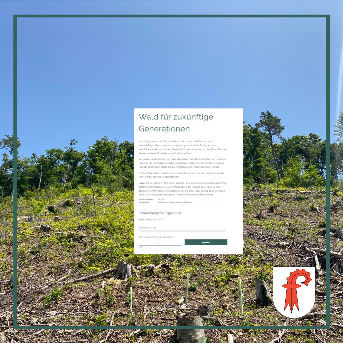 Du hast ein Waldstück oder ein braches Landstück, welches bepflanzt werden soll? Oder einen schützenswerten Baum? Dann lass uns die Schweiz grüner machen.